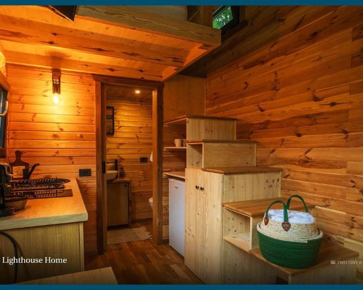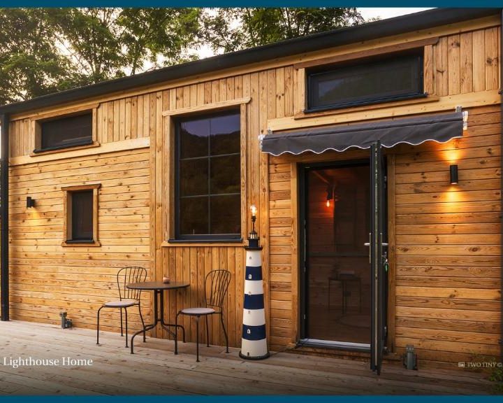 Proprietatea vǎ întâmpină cu douǎ căsuțe mobile : Casa Copacului, aflată la umbra unei salcii vechi de mulți ani și Casa Farului, o idee cu gândul la apele înconjurătoare, despărțite intre ele în mod intim de o saună care oferă o priveliște deosebită asupra muntelui și lacului. Căsuțele având o suprafață de 16 mp sunt fixate pe câte un deck generos de 30mp peste un lac, unde se poate pescui, oferă o grădină, facilități de grătar și aer condiționat pentru zilele toride, Wifi gratuit și patio.
