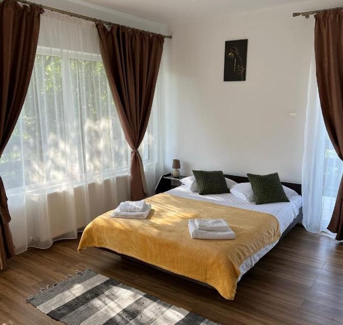 Vila este favorizata de o amplasare ideala, in localitatea Bran la 2 km de Castelul Bran si la 1 km de partia de schi Zanoaga, un loc ce ofera peisaje superbe indiferent de anotimp. Constructie noua, impresioneaza prin rafinament si bun gust. Toate spatiile de cazare dispun de grup sanitar propriu, tereasa, TV/cablu, acces internet. VA multumim !