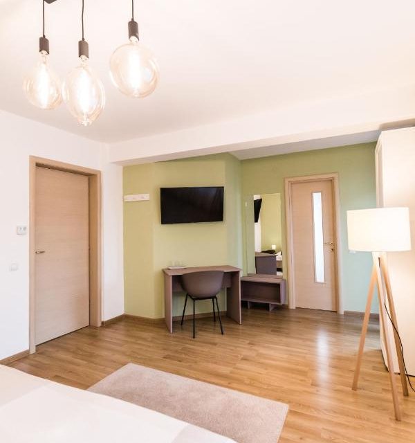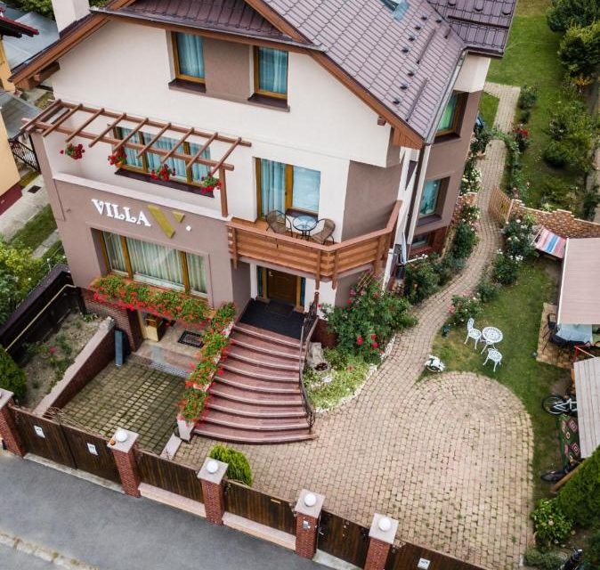 Suntem o familie cu pasiune pentru ospitalitate si ne gasim inspiratie in calatoriile si aventurile noastre. Suntem oameni pozitivi, cu o filozofie de viata simpla si cu bucurie in suflet. In cadrul vilei noastre exista trei camere standard si doua apartamente. Camerele sunt frumoase, luminoase si intime. Scopul nostru este ca fiecare oaspete sa plece cu o amintire frumoasa legata de orasul Brasov si ne dorim sa te intorci cu drag. Facilități Villa V: Locație în zonă liniștită (la 2. 8 km de centrul istoric) Living room luminos și spațios Grădină și două terase exterioare Chicinetă Șemineu relaxant de interior Loc liniștitor pentru citit Acvariu cu pești extrem de colorați Wifi pentru workaholici Ceai/cafea pentru pauza din mijlocul zilei Vin din gama proprie pentru depănat povești la final de zi Board games și masă rotundă pentru serile de socializare cu prietenii dragi Sistem audio pentru muzică relaxantă Brașov , str. Sfinții Arhangheli, nr. 16 – hartă Capacitate: Max. 16 adulți în 6 spații de cazare.