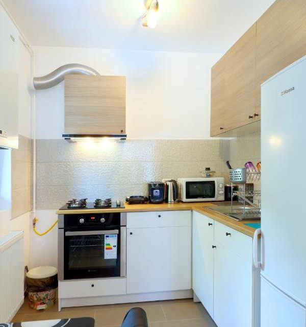 Apartamentul este curat și bine întreținut, cu mobilier modern și decor simplu, dar elegant. Bucătăria este complet echipată cu toate cele necesare pentru a găti, inclusiv frigider, plită electrica si espressor.