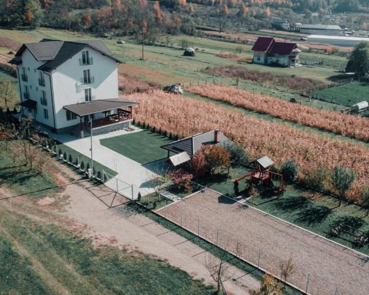 Aceasta dispune de un living spațios unde puteți organiza petreceri sau evenimente, 8 camere modern amenajate cu pat matrimonial, fiecare având baie proprie, precum și de o bucătărie care poate să satisfacă toate cerințele gastronomice ale oaspeților noștri.
