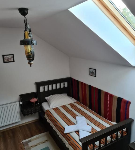 La etaj se afla 3 dormitoare (2 matrimoniale si 1 twin) si doua bai. 1 din camerele matrimoniale are baie proprie