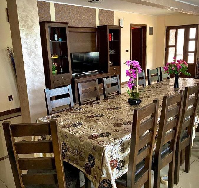 Parter living- TV, canapea, masa+scaune bucatarie- frigider, cuptor, aparat de cafea, masina de spalat vase 2 camere cu pat matrimonial (+baie) balcon Etaj 5 camere cu pat matrimonial (+baie) balcon Curte mare cu locuri de parcare, terasa, gratar, 2 balansoare, spatiu verde. Pentru mai multe detalii, asteptam sa ne contactati. Colibița , șoseaua Principală, nr. 1 – hartă ​Capacitate: Max. 14 adulți în 7 spații de cazare.