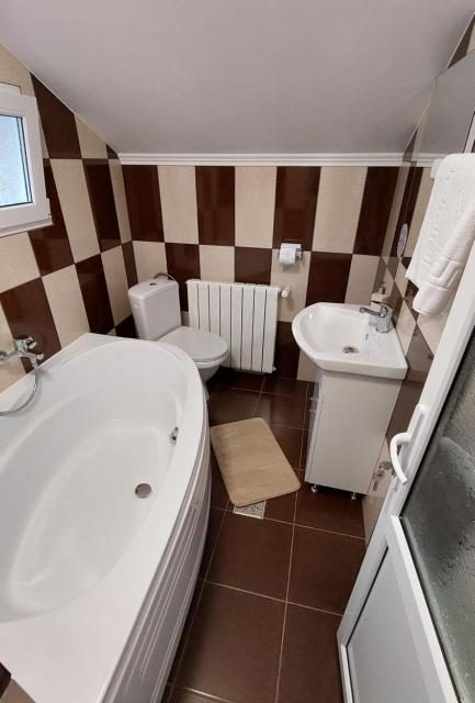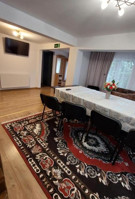 Este formata din 5 camere – care au paturi matrimoniale si TV cu ecran plat și 4 bai – 2 cu cabina de dus si 2 cu cada. Bucătăria este dotata cu frigider, plita și cuptor electric. O sa regăsiți toate cele necesare, de la farfurii,pahare, tacâmuri și cafetiera. Pe langa astea veti regasi si un living spatios cu canapea extensibila unde va puteti relaxa urmarind un film sau sa serviti masa impreuna. Va punem la dispozitie acces la internet WiFi gratuit.