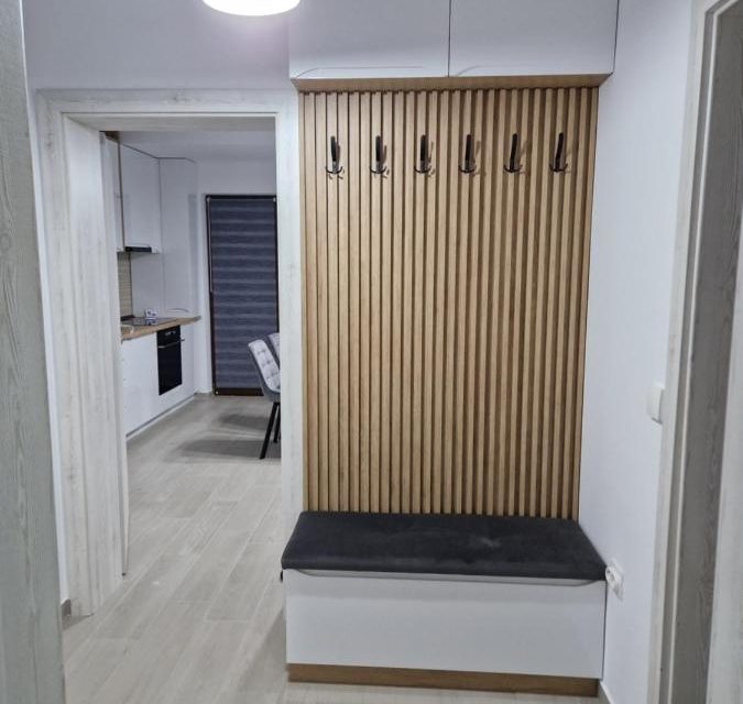 Apartament 2 camere în Cristian, la 12 km de Brașov, compus din dormitor cu pat matrimonial, living și bucătărie, open space, bucătărie complet utilata.