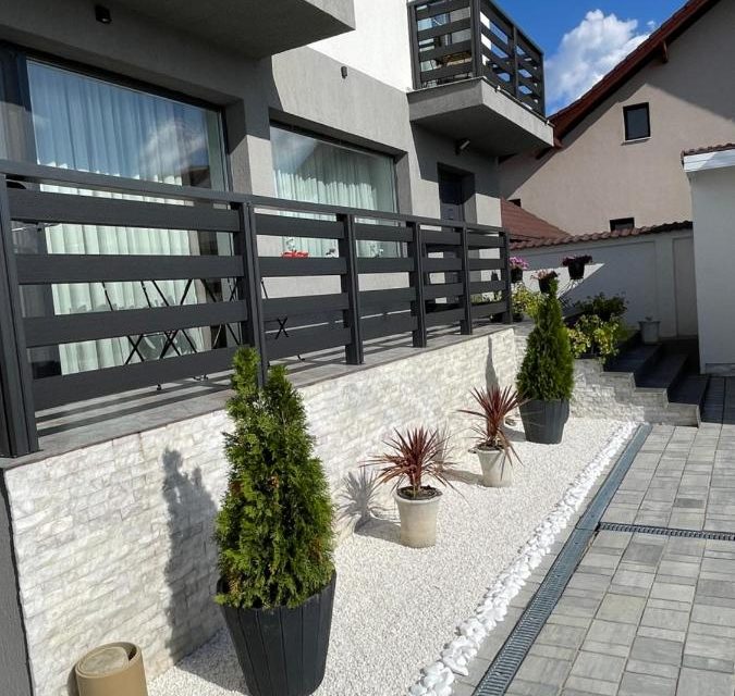 La parter – o camera de 38 mp cu pat matrimonial de 160/200, canapea extensibila, baie proprie si o terasa generoasa unde puteti servi dimineața cafeaua.