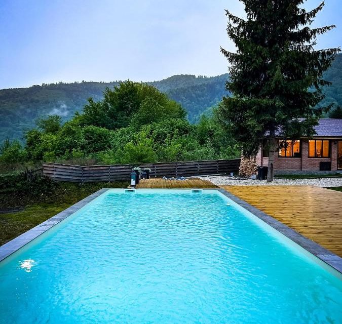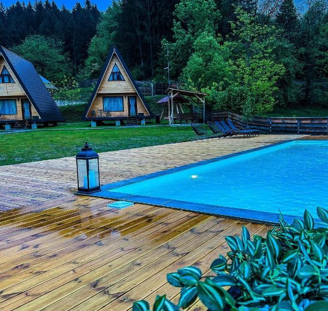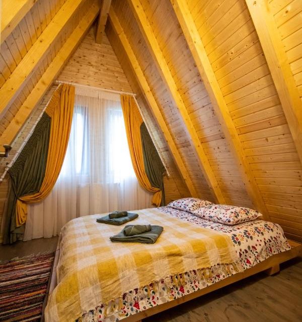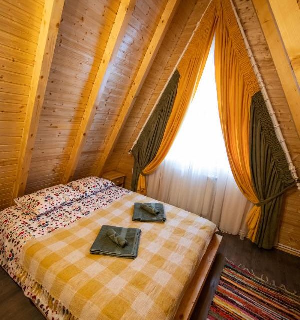 Complex turistic alcatuit din 5 cabane, , A frame, , fiecare cabana avand living cu bucatarie open space, baie, si doua dormitoare, capacitate 4 adulti si doua apartamente avand living cu bucatarie open space, baie, doua dormitoare inchise si un dormitor deschis la mansarda fiecare avand capacitatea de 6 adulti. Complexul nostru dispune de piscina incalzita, ciubar, doua foisoare inchise si loc de joaca pentru copii.