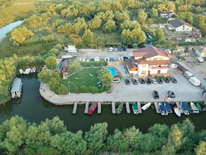 La 45 de km de Tulcea se află localitatea ultima localitate din Delta Dunării în care se poate ajunge cu mașina, Dunavatul de Jos. Pensiunea Califar vă pune la dispoziție în sufletul Deltei 8 camere duble dotate cu televizor, aer condiționat, grup sanitar propriu, frigider la dispoziția turiștilor pe terasa restaurantului, încălzire centrală. 5 din cele 8 camere au balcon. Din acest an, avem o bucătărie nouă, la dispoziția turiștilor. La cerere putem asigura mic dejun și cină, doar pentru grupuri (minim 8 persoane). Situată pe malul apei cu deschidere la aceasta pe 2 laturi într-o zonă foarte liniștită, vă oferă o gamă variată de condiții: -bucătărie la dispoziția turiștilor -terasă cu televizor -piscină -acces internet -parcare gratuită pentru turiștii cazați -living cu televizor. Pentru petrecerea timpului într-un mod cât mai plăcut vă oferim plimbări cu barca în Delta, partide de pescuit, leagăne și tonogan pentru copii, piscină și curte cu posibilitatea de a pregăti grătar la foișor. Posibilități de depozitare ambarcațiuni pe toată perioada anului. Vă așteptăm cu drag pentru un sejur petrecut în condiții avantajoase!