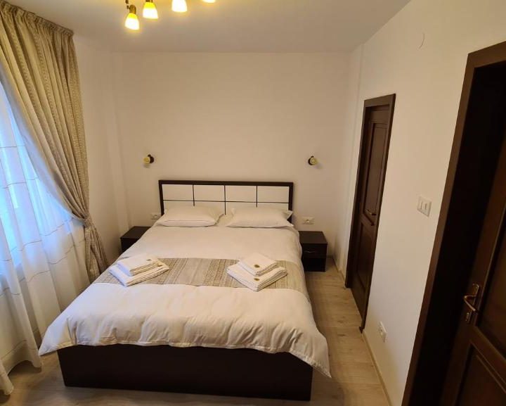 Vă punem la dispoziție un apartament decomandat de aproximativ 40 mp, cu două camere cu paturi matrimoniale, fiecare cameră are baie proprie și o terasă de 16 mp exclusiv pentru acest apartament.