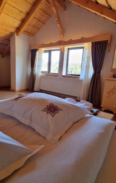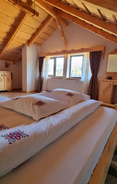 La capătul satului Fundățica, într-o zonă retrasă, aproape de padure se află căsuța noastră BunĂ, aceasta dispune de două camere cu bai proprii, living spațios cu semineu si bucătărie open space complet utilată, prispa bunicii, grătar, foișor și o priveliște de vis asupra munților Bucegi! Căsuța poate găzdui 4 adulți cu 4 copii în cele două camere aflate la etajul casei. La parter mai avem o canapea extensibila ce poate fi folosită, la cerere adăugăm și câte un pat suplimentar în fiecare camera. Căsuța nu se adresează manifestărilor zgomotoase, fiind într-o zonă retrasă și liniștită dorim sa o păstrăm asa! Fundata , sat Fundățica , str. Principală, nr. 49 – hartă ​Capacitate: Max. 4 adulți și 2 copii în 1 spațiu de cazare.