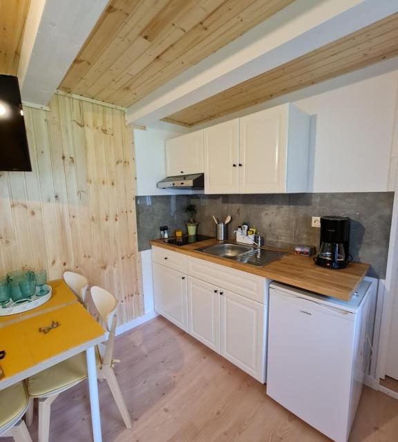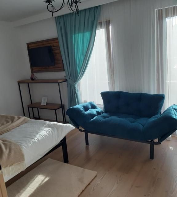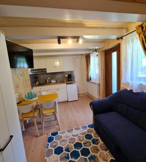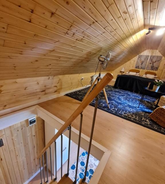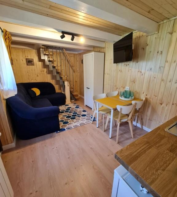 În aceeași curte va punem la dispoziție o casuta tip bungalow, ` Căprioara`, finalizata in iulie 2021, care are baie proprie, chicineta utilata cu frigider și plita de gătit, filtru de cafea, vesela și ustensile de bucatarie, un mini living cu canapea extensibila și smarttv, iar la mansarda un spațiu de dormit. Capacitatea este de 4 persoane.