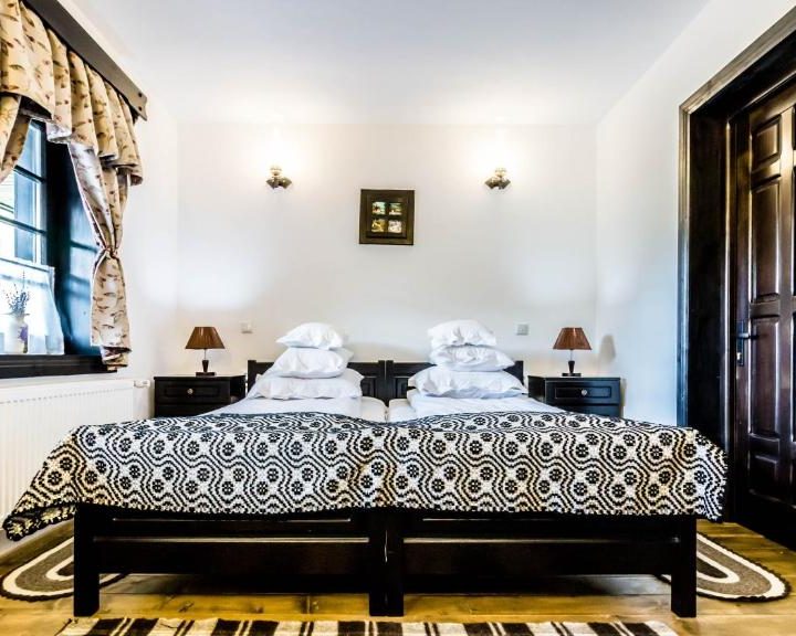 Pensiunea dispune de 23 locuri de cazare în 6 camere duble, 1 tripla si 2 apartamente, locurile putând fi suplimentate cu paturi pliante pentru copii.