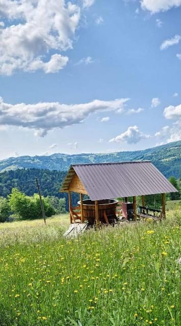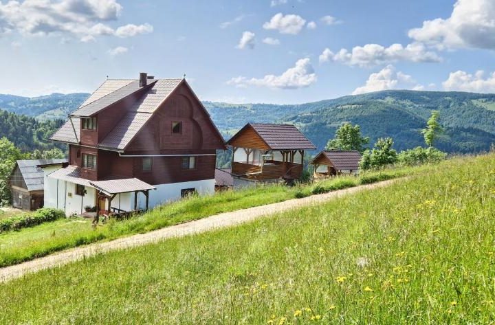 Pensiunea dispune de o pajiște uriașă plină de flori de câmp iar anexele clădirii – foișor pentru servirea mesei, grătar profesional cu tiraj natural și balansoar – sunt construite în stil tradițional și se integrează perfect în peisaj. Dacă sunteți pasionați de ciclism, puteți veni cu bicicletele la noi pentru că de aici puteți accesa cu ușurință toate obiectivele turistice din zonă. Camerele dotate cu mobilier din lemn masiv, cu două paturi duble, pot găzdui cu ușurință familii mai numeroase.