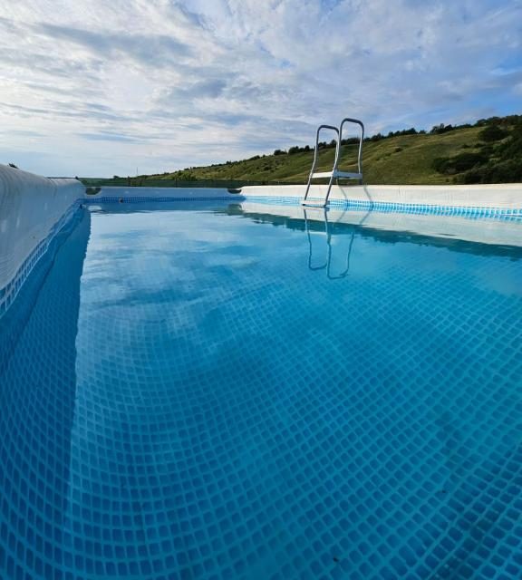 Dar cireașa de pe tort este piscina situată la doar câțiva metri de casă, într-o livadă încântătoare din grădină. Cu propria plajă și șezlonguri, piscina este locul ideal pentru a vă răcori în zilele călduroase și pentru a admira peisajul mirific înconjurător. Ascultați cântecul păsărelelor și greierilor, relaxați-vă într-o oază de liniște și bucurați-vă de razele blânde ale soarelui.