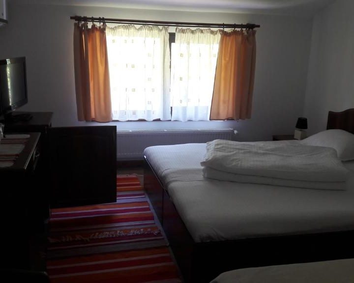 12 camere (8 duble și 4 triple) cu baie, mini-frigider, Tv (programe akta), internet. Pensiunea se află pe Valea Lotrului, jud. Vâlcea (dn-7a, km 18, 5), pe malul drept al lacului Brădișor. Drumul Dn-7a face legătura dintre Dn-7 / E-81 (orașul Brezoi) și șoseaua Transalpina (Obârșia Lotrului). Loc excelent de odihnă și relaxare pentru cei care vor să parcurgă Transalpina, atât varianta nordică, Obârșia Lotrului – Oașa – Sebeș Alba, cât și varianta sudică, Obârșia Lotrului – Rânca – Novaci. Alte dotări: • sală de primire (cu Tv Digi satelit, Dvd, home cinema), sală de mese cu aceleași dotări • sală de jocuri (ping-pong, biliard, fotbal de masă, air-hockey, darts). • terase exterioare la parter și etaj. • zone de odihnă și recreere pentru adulți. • grădină cu foișoare și balcoane cu vedere la lac. • locuri de joacă pentru copii. • foișor cu grătar, vatră și cuptor. • parcare proprie (se închide noaptea). Se pot organiza mese festive, aniversări sau alte evenimente. Locuri de vizitat: • fântâna Brătienilor (sat Malaia, potecă, durata cca 40 min) • cascada Scorușu (sau Bucureasa, parțial drum forestier, parțial potecă, durata cca 1 h 30 min). • Valea Latoriței, cu cascada Apa Spânzurată, lacurile Petrimanu și Galbenu. Drumul forestier (nu foarte bun dar practicabil) traversează muntele pe curmătura Oltetului și trece spre Cheile Oltetului spre Polovragi – Peștera Muierii. • drumul „strategică”, paralel cu Valea Latoriței (pe culme), care întâlnește Transalpina în Saua Ștefanu – practicat de off-roaderi. • în perioada 8-18 iunie poate fi vizitată rezervația naturală de Bujori de munte (rododendron) din Groapa Mălăii (se poate merge pe râul Malaia / pârâul Mălăița până la stână – cca 3 ore). • Poate fi vizitat Barajul Vidra, cel mai mare baraj de anrocamente din țară, precum și lacul cu același nume. • atât vara cât și iarna poate fi vizitată cea mai nouă pârtie de schi din țară – Pârtia Mioarele (Transalpina). • Mănăstiri: Cozia, Turnu, Schitu Cornet.