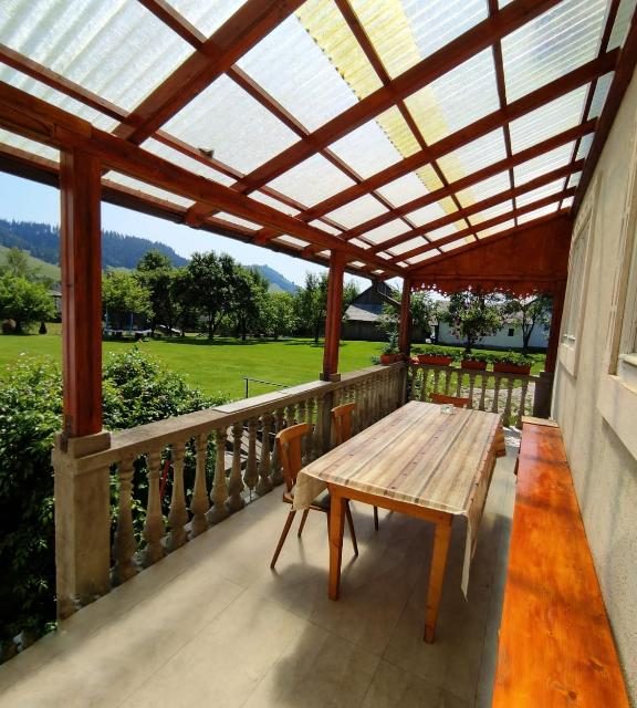 7 camere spatioase, duble si triple, cu bai proprii, iar intr-un rustic foisor va puteti pregati mititei si carnaciori la gratar. La numai 5 km va puteti scalda intr o piscina recent data in folosinta, puteti sa admirati obcinile Bucovinei presarate cu turme de mioare si ciobani cu diplome date de Ue :), plimbandu-va cu mocanita sau urcand aproape de crestetul obcinilor cu ajutorul telescaunului, iar de acolo de sus, cei mai cutezatori pot cobori partia cu ajutorul schiurilor:). Produse proaspete din lapte puteti cumpara de la gospodariile taranesti din vecinatatea pensiunii, oua proaspete de la gaini care inca nu au fost stresate, le gasiti zilnic in cosurile captusite cu fan proaspat, iar daca vreti sa nu va plictisiti, puteti sa ne ajutati la stransul fanului si chiar la cosit, daca va incumetati!