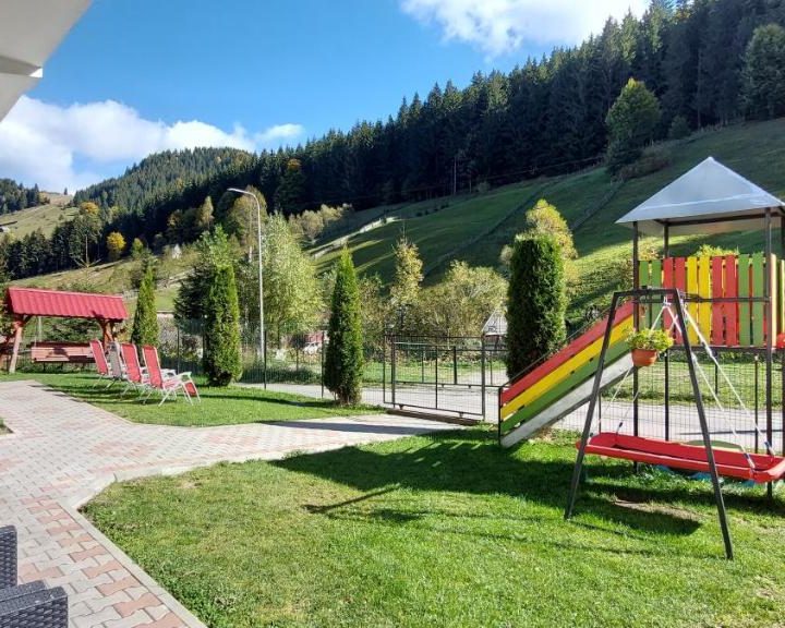 . . . Va rog sa ne contactați telefonic! . . . Tel 0757937280 Va rog sa citiți regulile casei înainte de a rezerva! Vila situata in Moeciu de Sus intr-o zona linistita va ofera cazare in 8 camere. Toate camerele au baie proprie, tv, internet, incalzire centrala, sala de mese, bucătărie complet utila cu veselă, plita aragaz, cuptor cu microunde, expresor cafea etc. Foișor Grătar ( este necesar sa aveți cărbuni ) Leagan Trambulină Parcare Tobogan Va rugam să citiți regulile casei înainte de a rezerva! In pensiune nu se fumează( strict interzis). Nu acceptăm animale de companie Copiii dorim sa fie supravegheați de către părinți Avansul este nereturnabil si nu se poate folosi in alta perioada decît cea rezervată. Când pensiunea este închiriată integral de un singur grup se poate asculta muzică în limita bunului simț și nu avem restricții în privința orelor de liniste. In livingul pensiuni se va sta maxim pana la ora 22:30 când vila este închiriată individual. Pensiunea nu se închiriază pentru o singura noapte. Nu acceptăm persoane cazate in alte pensiuni. Va Asteptam Cu Drag! Moeciu , sat Moieciu de Sus , str. Valea Popii, nr. 75B – hartă ​Capacitate: Max. 16 adulți în 8 spații de cazare.