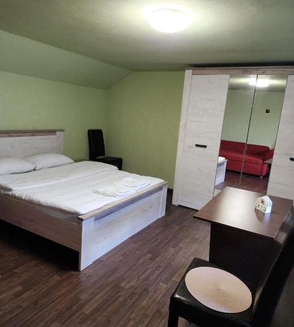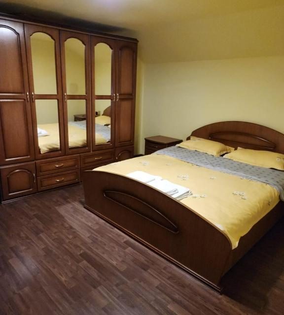 – 3 camere la etaj (1 camera cu baie proprie, 2 camere cu 1 baie comuna);