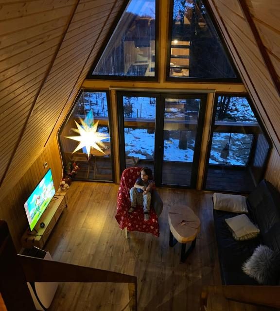 Triangle House Parang este o cabana de tip A-Frame ,este situata in zona Rusu din Muntii Parang, la numai 15 min de orasul Petrosani.Capacitate max. 2 adulti.Ne aflam intr-o zona privilegiata fata de restul cabanelor, indepartati de aglomeratia urbanistica din zona ,cu o vedere de vis. Cabana este dotata cu toate lucrurile necesare: wifi Gratis nelimitat prin fibra optica 400Mb,TV prin cablu, masina de spalat vase,masina de cafea Dolce Gusto,prajitor de paine,cuptor cu microunde,cuptor,plita electrica cu 2 ochiuri,hota,frigider.NOU netflix inclus!!!
