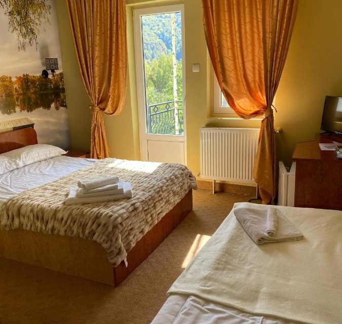 Pensiunea dispune de 10 camere dintre care 4 cu balcon, 5 cu vedere la padurea cu Mesteceni si un Apartament la parter . Dispune de zona de agrement interioara cu masa de tenis , jocuri,dartz .Zona de SPA are doua saune si un ciubar exterior cu o priveliste fantastica