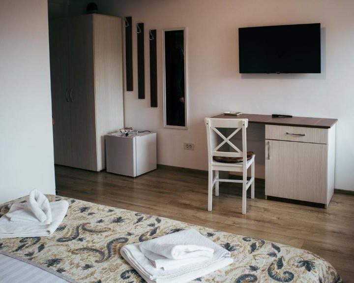 Suntem o locație deschisă în 2021, clasificata la 3 stele, situată – la propriu – sub Cetatea Râșnovului, într-un cadru aerisit și liniștit, departe de traficul auto al orașelor, într-un cartier rezidențial. Stilul arhitectural este unul inedit care combină elementele caselor românești cu cele victoriene, o notă elegantă în acest sens fiind dată de balcoanele franțuzești și de lucarnele in formă de semicerc. Vă punem la dispoziție camere cu paturi duble, duble twin – cu baie proprie, dotate cu minibar, mobilier modern, Wi-fi și Tv cu ecran plat. Din camere puteți admira pădurea din apropiere, cetatea și, în plan îndepărtat, Masivul Postăvaru, Munții Bucegi și Munții Piatra Craiului. Aceeași priveliște spectaculoasă vă este oferită și de terasa de la etaj, locul perfect dimineața, pentru cafea, sau seara, în compania prietenilor. Avem și o zona de lounge utilată complet, unde puteți să vă petreceți timpul, să vă pregătiți și să serviți gustările. Pentru un plus de siguranță, parcarea și împrejurimile sunt supravegheate video. În apropiere se găsesc locuri de joacă, market-uri și restaurante.