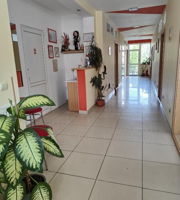 La parterul unitatii se afla sala de mese cu bucatarie dotata corespunzator ( plita electrica, cuptor cu microunde, fierbator de apa, frigider, vesela si tacamuri ).