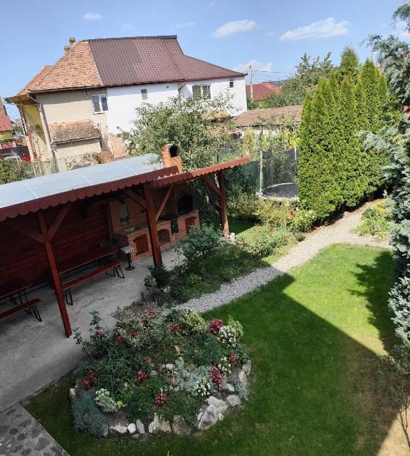 In spatele cladirii se gaseste o gradina frumos amenajata cu spatii verzi, alei, multe flori, masa pentru 20 de persoane, barbeque si alte spatii de recreere.