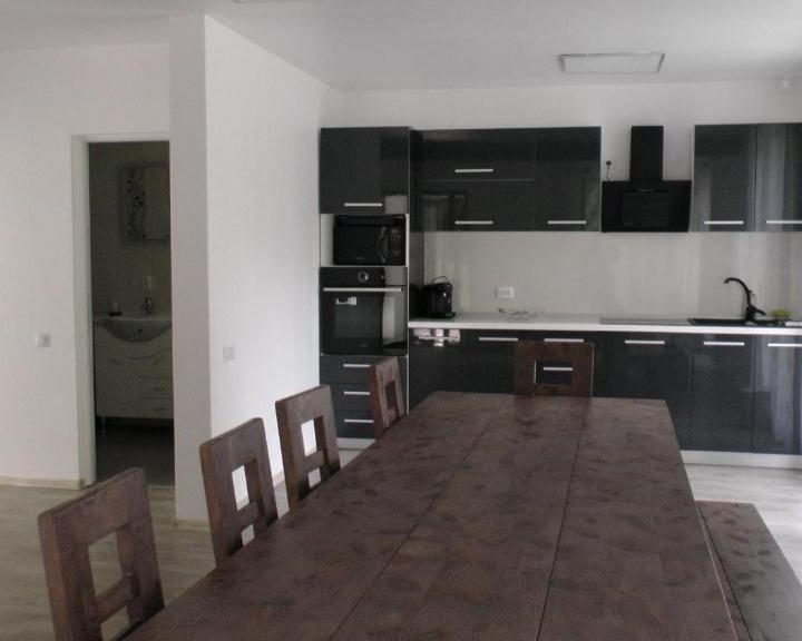 – Living spatios cu bucatarie utilata, masa pt 12 persoane, televizoare in dormitoare si in living