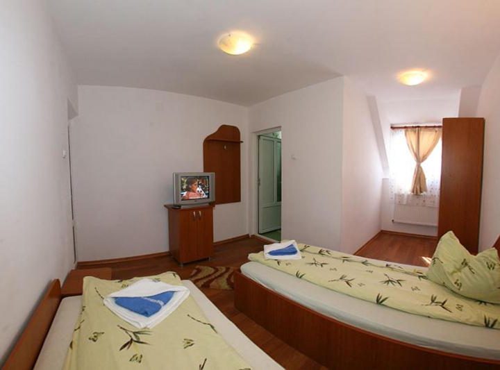 Vila Ursu va ofera cazare in conditii foarte bune, intr-o cladire nou construita si dotata modern. Avem 8 camere de 2 persoane, 1 camera de 4 persoane(dormitor si baie), toate cu bai proprii, televizor si incalzire centrala.