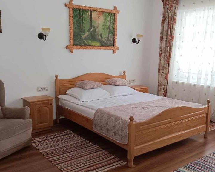 Bun venit la o pensiune agroturistică deosebită, situată pe aproape 65 ari în inima comunei Sucevița, pe drumul ce leagă orașele Rădăuți și Câmpulung Moldovenesc, la cca 1 km de Mănăstirea Sucevița, pe Calea Movileștilor, nr 162. Pensiunea agroturistică Cristal dispune de 7 camere, 4 camere duble, 2 camere tip family și o cameră dublă twin, fiecare cameră având baie proprie, Tv, încălzire centrală, internet wireless. Sala de mese are o capacitate de 20 locuri prevăzută cu: frigider, sobă cu plită, chiuvetă cu apă caldă și rece, 2 toalete. În livadă: foișor cu grătar, leagăn, ciubăr cu apă sărată și hidromasaj, saună, râu în spatele curții, loc de campare cu 4 dușuri și 4 toalete. Pensiunea dispune de parcare în curte sau în curtea din spatele casei. Pădurea este chiar în spatele livezii și se pot face plimbări scurte sau drumeții pe traseele marcate din zonă. Dacă doriți, puteți face rezervare pentru cină și vă putem aștepta cu faimoasele plăcinte poale-n brâu, păstrăv cu smântână sau alte delicioase mâncăruri tradiționale. Până atunci, toate cele bune! Vă așteptăm cu drag în Bucovina!