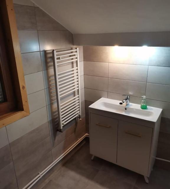 La parter puteți beneficia de un living spațios care poate găzdui până la 2 persoane, dotat cu TV, o bucătărie utilată complet cu tot ce aveți nevoie, care vă stă la dispoziție și o baie dotată cu duș.