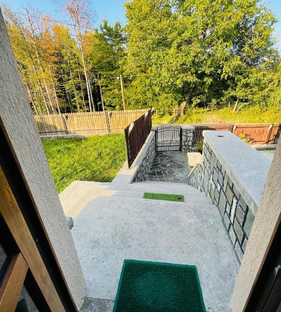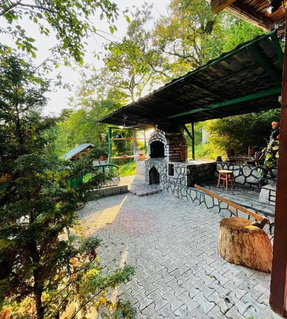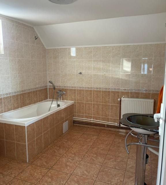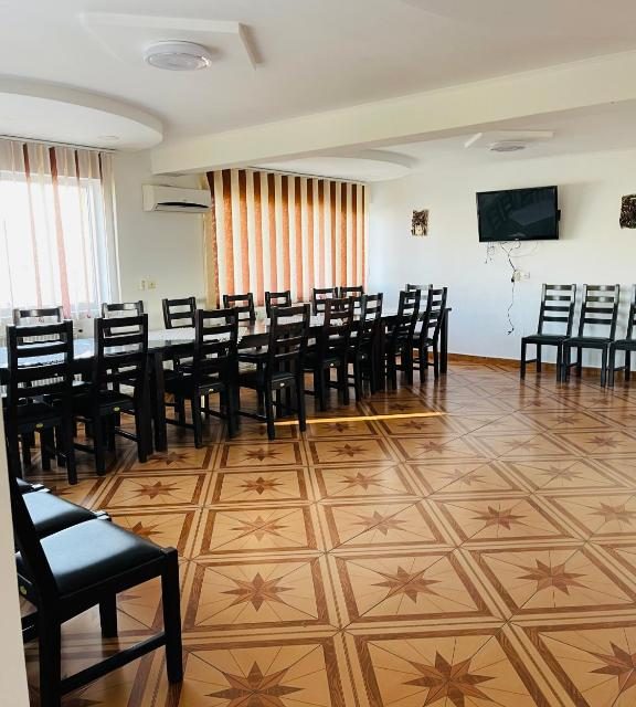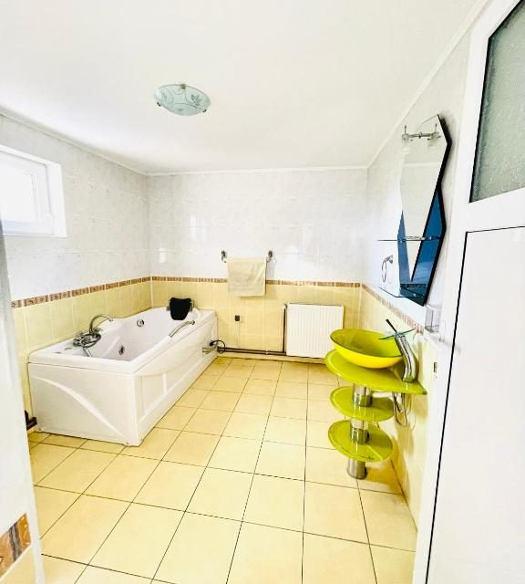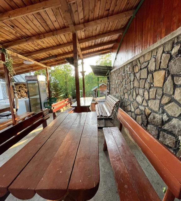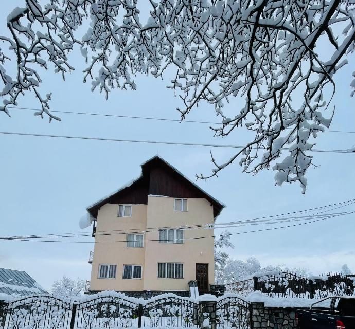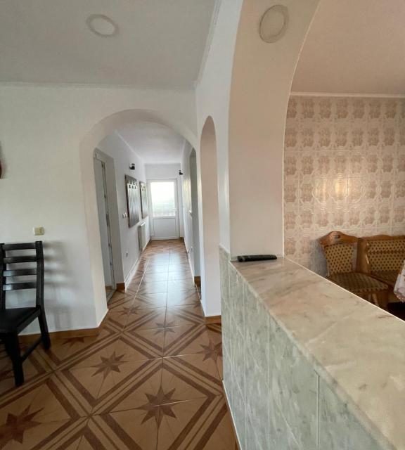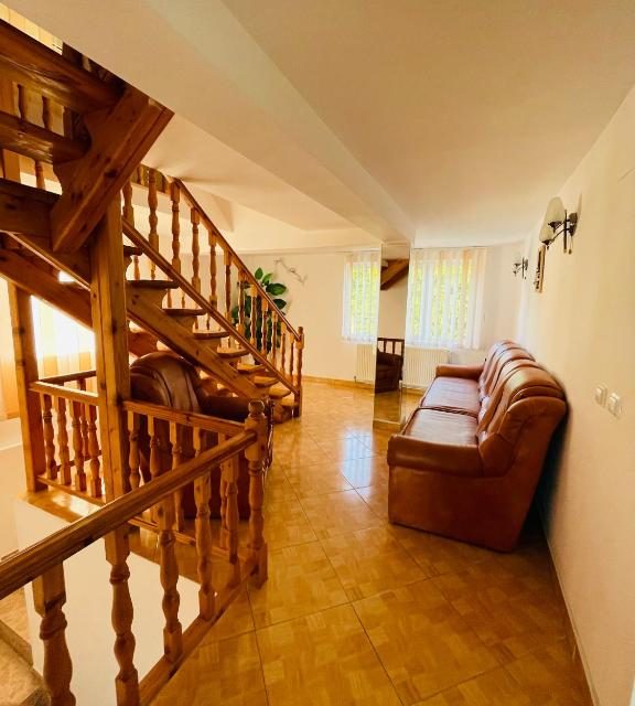 Dispune de 10 camere duble, living foarte spatios la parter, bucatarie modern si complet utilata, crama la parter cu mese si banci de lemn, terasa rustica acoperita si gratar in curte.
