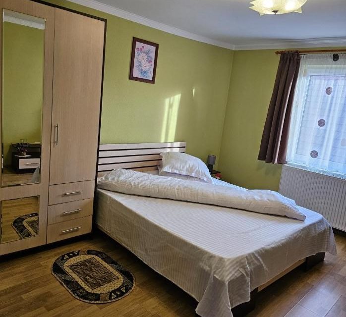 Situata intr-o zona retrasa şi liniştita din Zarnesti in apropierea Muntiilor Piatra Craiului Casa noastra va asteapta cu bucurie sa-i treceti pragul si sa petreceti cliipe de relaxare care sa ve faca sa reveniti cu drag la noi. Vila Vladut va ofera 5 camere duble cu bai proprii , TV , sala de mese, bucatarie complet utilata la dispozitie ,living acces la internet , curte, locuri de parcare ,gratar ,incalzire centrala . De asemenea detinem si ingrijim cu toata dragostea o micro-ferma de vacute tinere si sanatoase de unde va putem servi cu produse lactate de cea mai buna calitate . In zona va mai puteti bucura de numeroase obiective turistice -Cabana Gura Raului ( situata la poalele masivului Pietrei Craiuliu) -Cabana Plaiul Foii -Cabana Curmatura -Prapastile Zarnestiului ( Cheile Zarnestiului) -Schitul Coltii Ciliilor (Biserica de sub stanca din masivul Pietrei Craiului) -Rezervatia de ursi `Liberty` `Libertete pentru ursi ` -Castelul Bran (la numai 4 Km de Pensiunea Vladut) -Cetatea Rasnov(la numai 5 Km) -Cheile Rasnoavei Va asteptam!! Zărnești , str. Școlii, nr. 158 – hartă ​Capacitate: Max. 10 adulți în 5 spații de cazare.